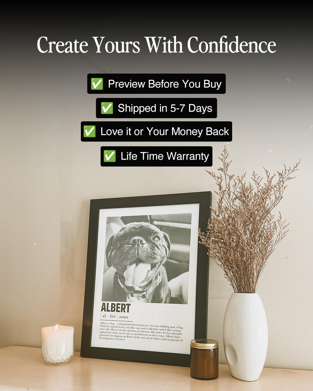 At Vogue Paws, every portrait is crafted with care and precision. If your order isn’t perfect, let us know within 14 days, and we will make it right. No hassle, no worries.